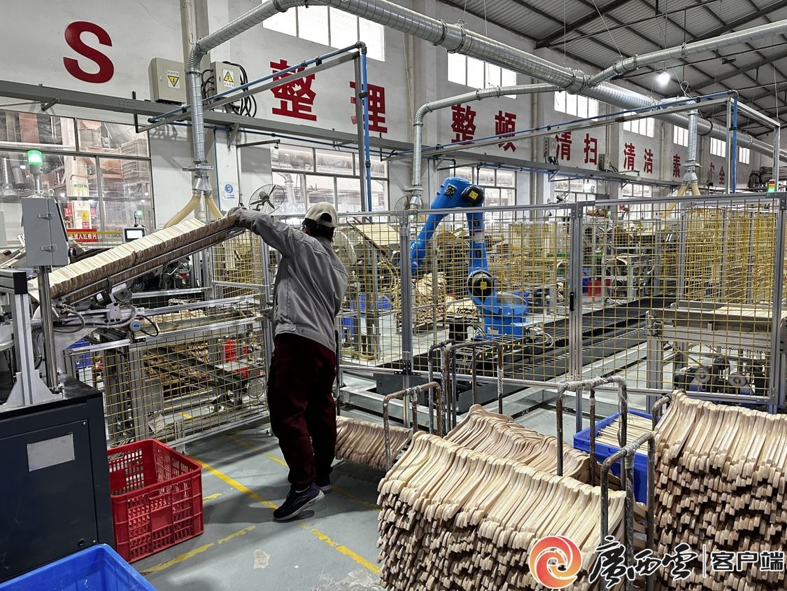 走进桂林裕祥家居用品有限公司的生产车间,工人们正有序地制作衣架,从压刨到打磨,从仿形到合成衣架,各个工序有条不紊地进行着。