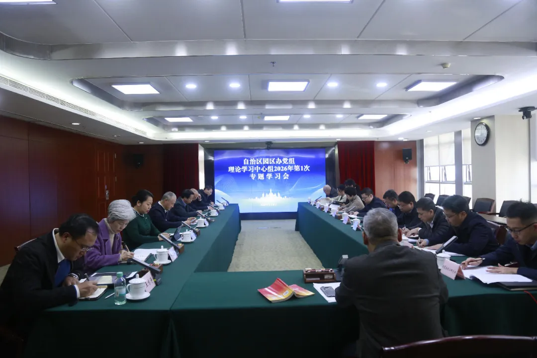 2026年1月8日下午,自治区园区办党组理论学习中心组召开2026年第1次集中学习会,会议聚焦深入学习领会党的二十届四中全会精神,贯彻落实中央经济工作会议精神和自治区党委十二届十一次全会及全区经济工作会议精神开展集中学习研讨。自治区园区办党组书记、主任邹展业主持会议并讲话。