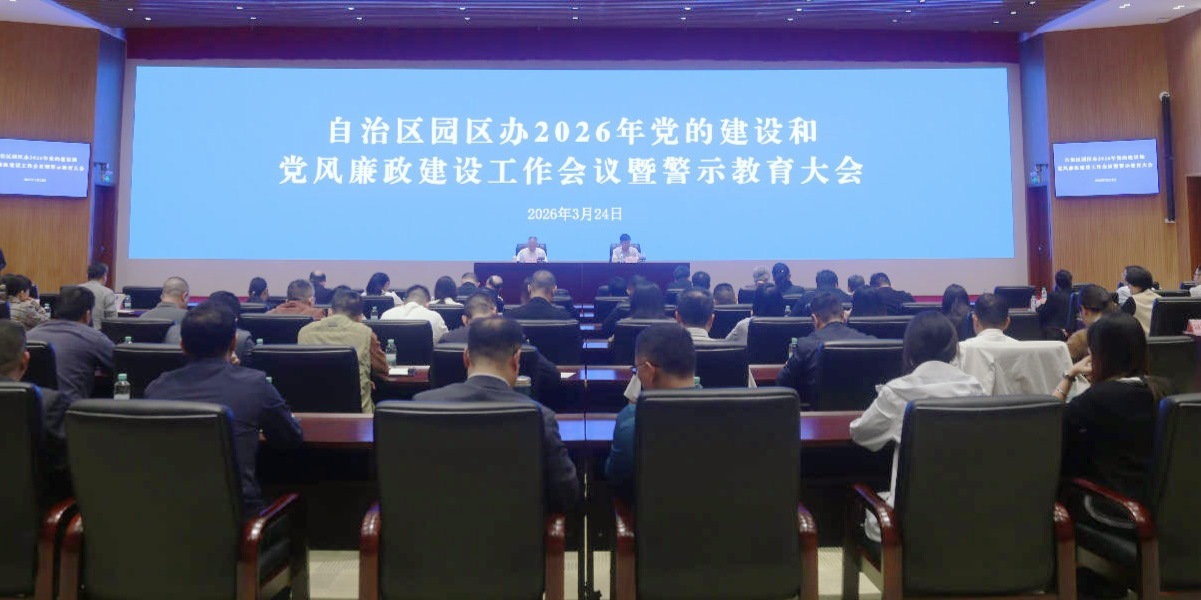 3月24日,自治区园区办召开2026年党的建设和党风廉政建设工作会议暨警示教育大会,全面总结2025年机关党的建设、党风廉政建设工作,部署2026年重点任务,并开展警示教育、集体廉政谈话。自治区园区办党组书记、主任邹展业主持会议并讲话,自治区纪委监委驻自治区党委金融办纪检监察组二级巡视员李临福出席会议并提出要求。