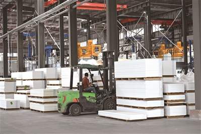 “目前项目建设进展很顺利。”项目有关负责人介绍,大板自动化生产线已建成4条,其中2条实现正常投产,剩余2条进入安装收尾阶段;小板生产线共规划8条,当前6条已顺利投产,2条正加速推进建设。