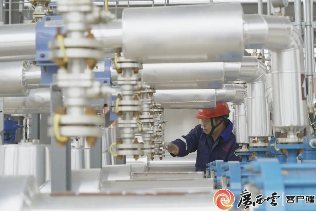 技术人员对设备进行现场监测,确保安全生产。记者 覃鸿图 摄