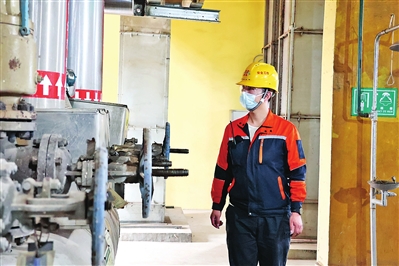 近日,贵港桂平新材料产业园广西心连心化学工业有限公司复合肥生产车间,巡检员在巡查生产设备。杨小露摄