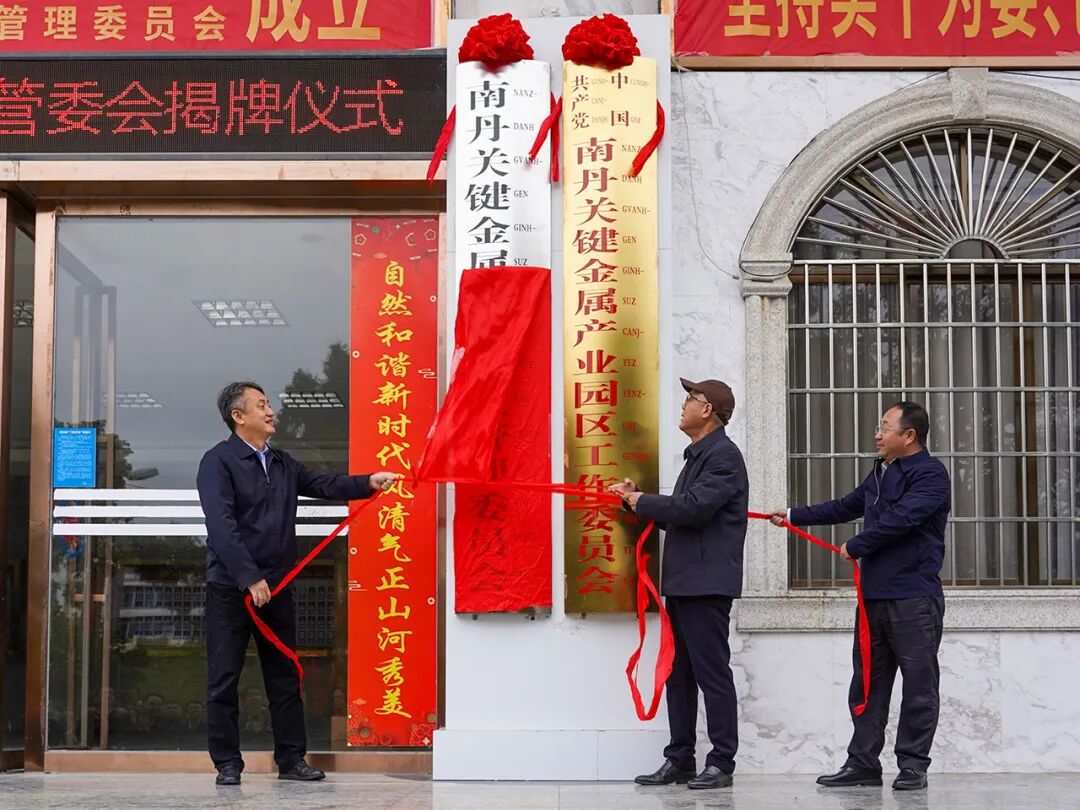11月18日上午,南丹关键金属产业园区党工委、管委会揭牌仪式在南丹县举行。河池市委书记秦春成致辞;河池市委副书记、市长王军,自治区发展改革委副主任莫前锋,自治区产业园区改革发展办公室副主任、自治区投资促进局副局长王宗文出席,并为“中共南丹关键金属产业园区工作委员会”“南丹关键金属产业园区管理委员会”揭牌。