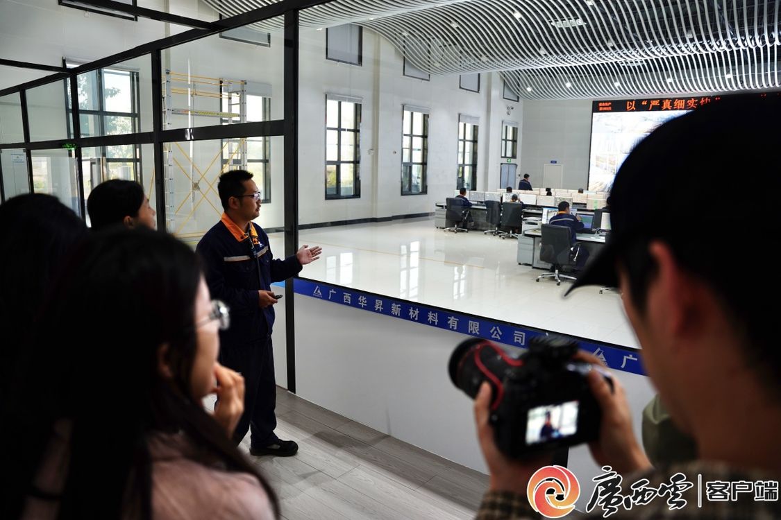 11月26日,2025年主流媒体看广西产业园区高质量发展活动采风团走进防城港经济技术开发区(以下简称防城港经开区)的广西华昇新材料有限公司,数字化、智能化带来的“科技范”令媒体记者们颇为惊叹。