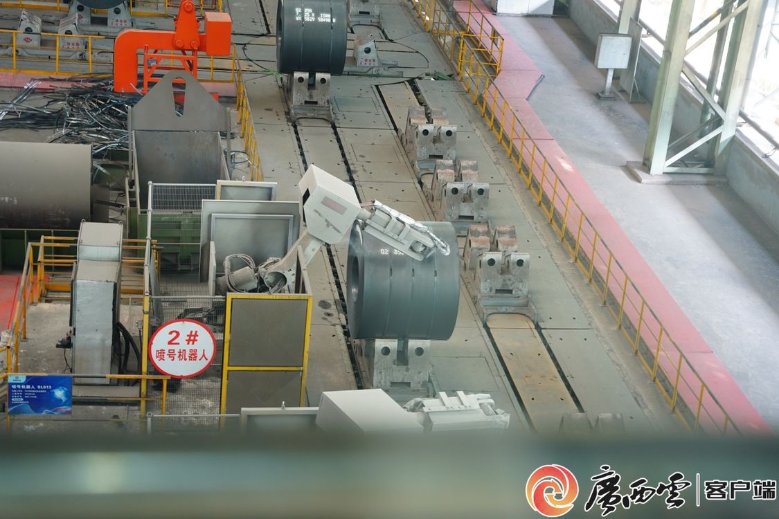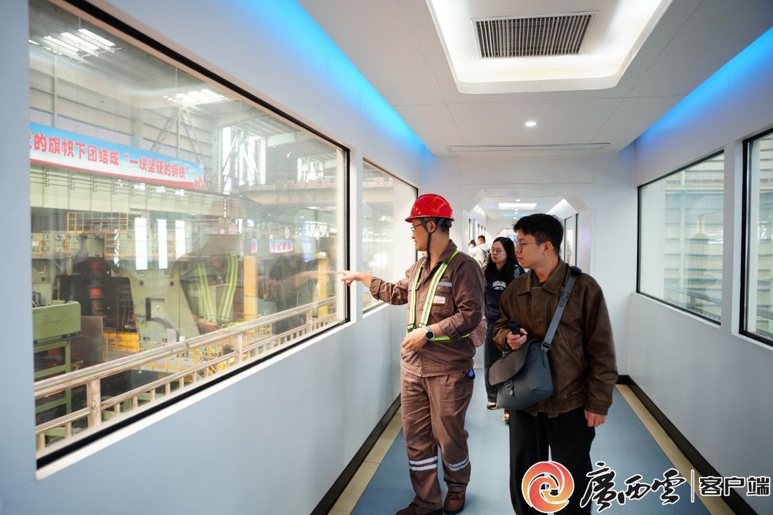 11月26日,2025年主流媒体看广西产业园区高质量发展活动采风团走进这家钢铁企业的生产区域。只见这里钢花飞溅却无粉尘烟味,车间里工人踪迹难寻,玻璃窗口内钢铁数字孪生系统正实时反映各种参数,机器狗在生产线旁来回巡逻,喷号机器人往钢卷上自动喷打型号信息。