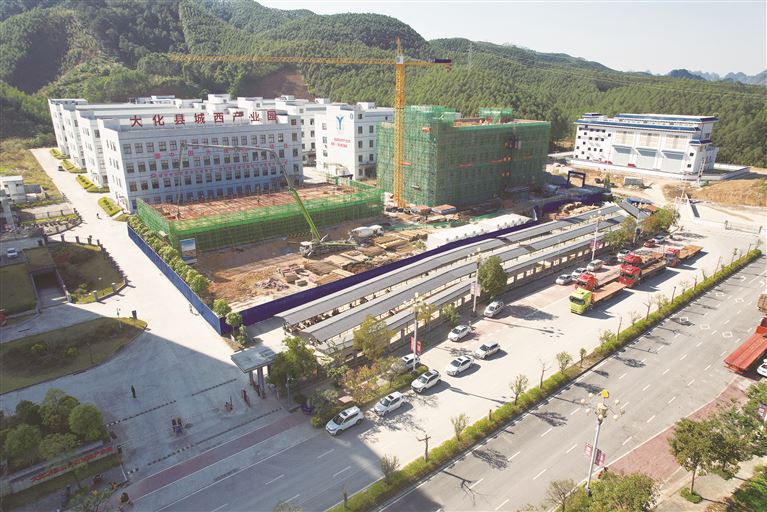 12月14日,河池市大化瑶族自治县城西产业园标准厂房建设项目二期工程建设正酣,各项施工任务按计划稳步推进。