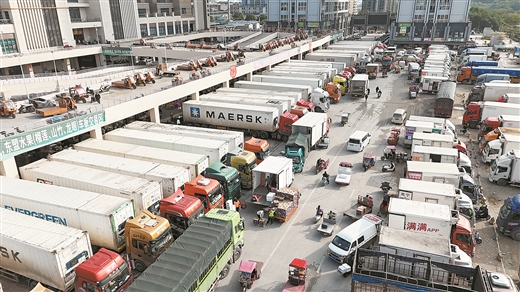 在广西海吉星农产品国际物流中心,来自全国各地以及东盟国家的水果在此地流转,供应给各地客商。记者 徐天保/摄