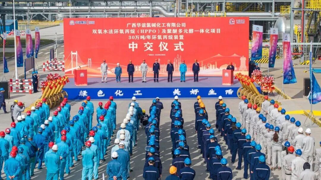 广西华谊氯碱化工有限公司HPPO项目30万吨/年环氧丙烷装置中交仪式现场。