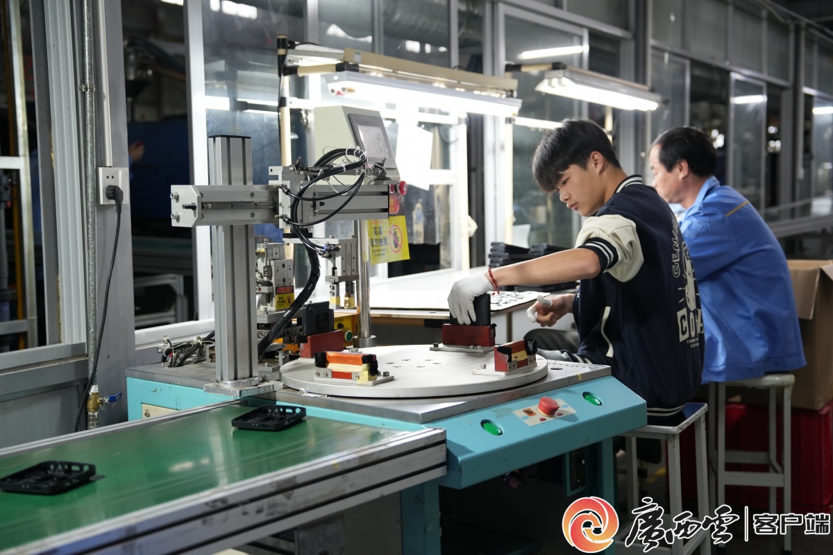 在贺州美兴塑胶制品有限公司,车间内同样火热,有的工人正忙着调试注塑机设备,有的工人则专注检测产品。“当前员工返岗率已超80%,部分外省员工正陆续分批返岗。为保障生产连续性、满足订单增长需求,我们计划年内再招聘30余名一线工人。”该公司经理金利勇介绍道。