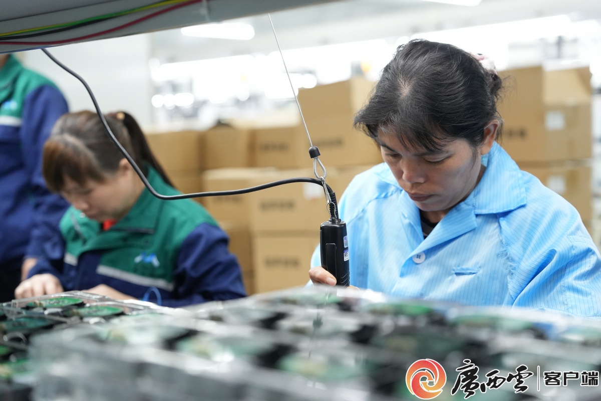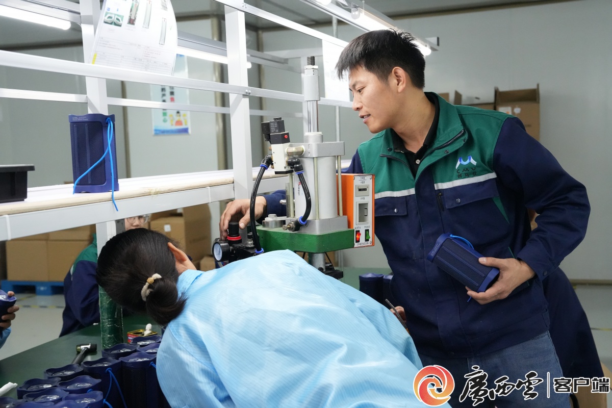“左声道测试、右声道测试……”在广西创马优电子技术开发有限公司三楼组装车间,记者循声望去,看到工人们正专注地将扬声器单元、集成电路板、音响框架等核心部件有序组装。这些产品经质检后将打包发往深圳。