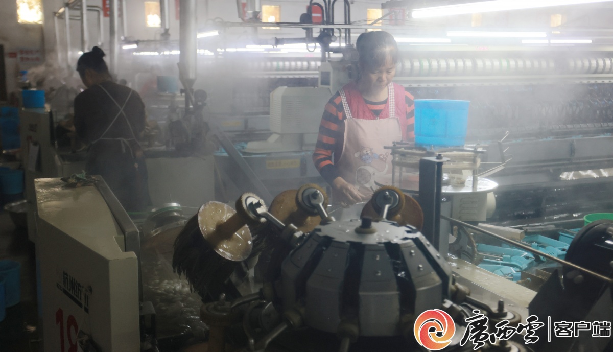 2月24日,在柳州市柳城县工业园区一家缫丝加工企业,工人返岗复工,企业开满20条生产线冲刺开门红。