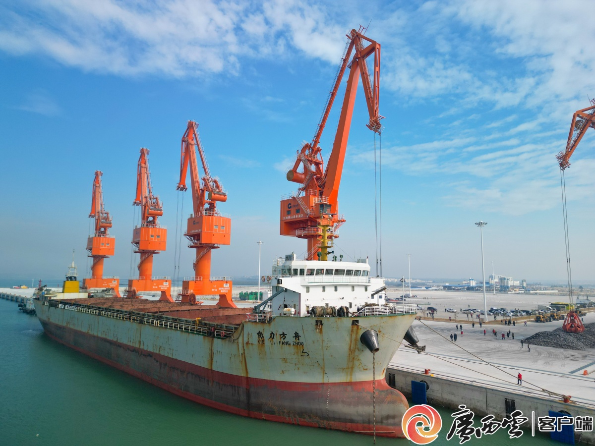 北海港口岸铁山港东港区榄根作业区停靠首艘外籍船舶。