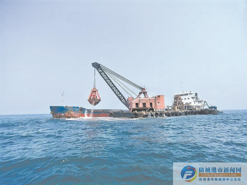 中交广州航道局有限公司防城港港30万吨级进港航道工程(一期)施工I标段项目经理部副经理闫岩介绍:“防城港港30万吨级航道项目全长23公里,I标段长度3.05公里,施工方量697万立方米。截至目前,现场配备抓斗船4艘、泥驳5艘。完成方量135万立方米,完成比例约15%,完成产值超过15%。”