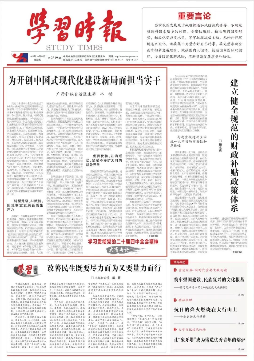 《学习时报》2025年10月31日第1版截图
