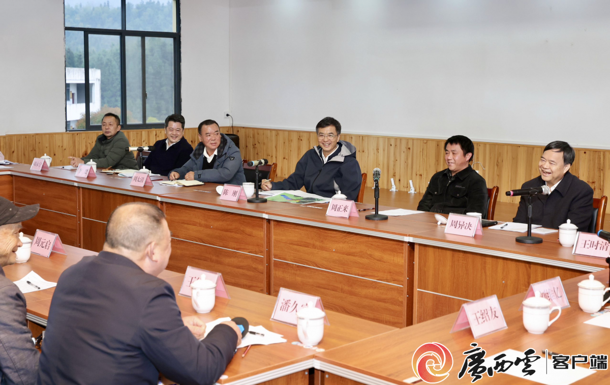 3月19日,自治区党委书记、自治区人大常委会主任陈刚深入桂林市资源县调研历史矛盾纠纷化解工作,来到中峰镇八坊村与村民代表、资源县林业部门负责人、山林承包人等面对面座谈交流。广西云-广西日报记者 黄克 摄